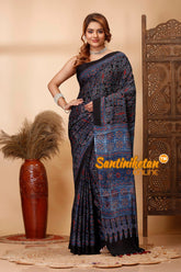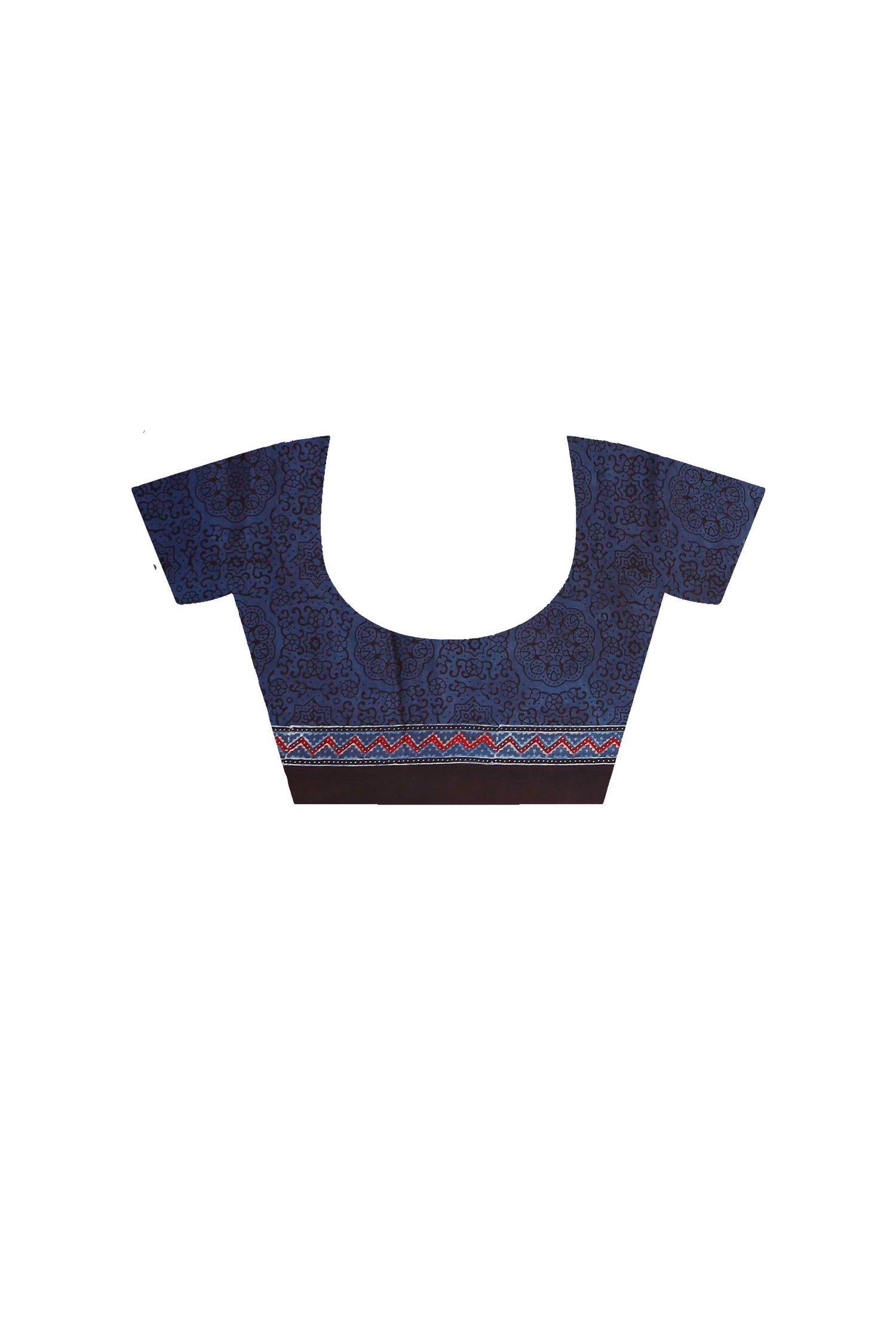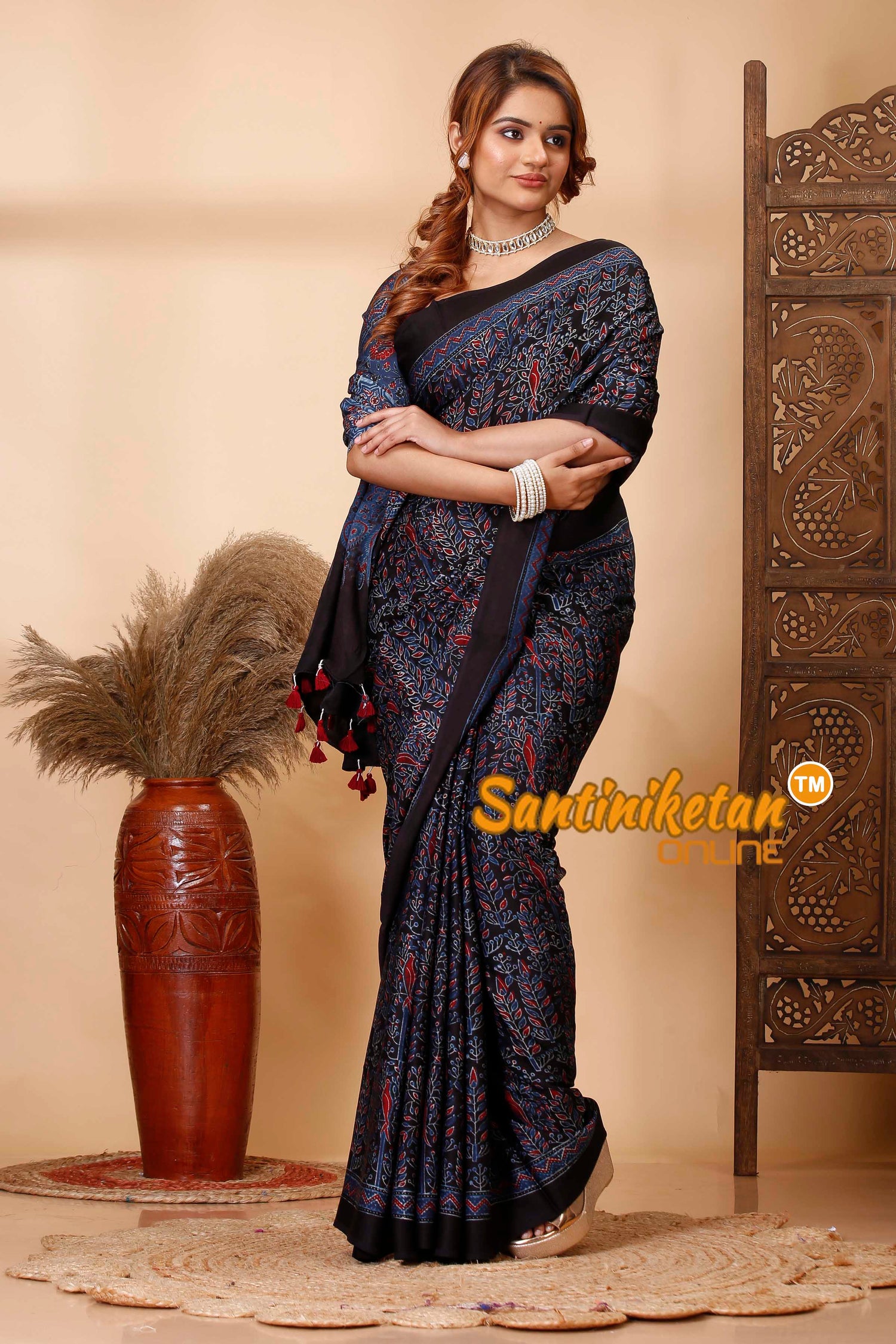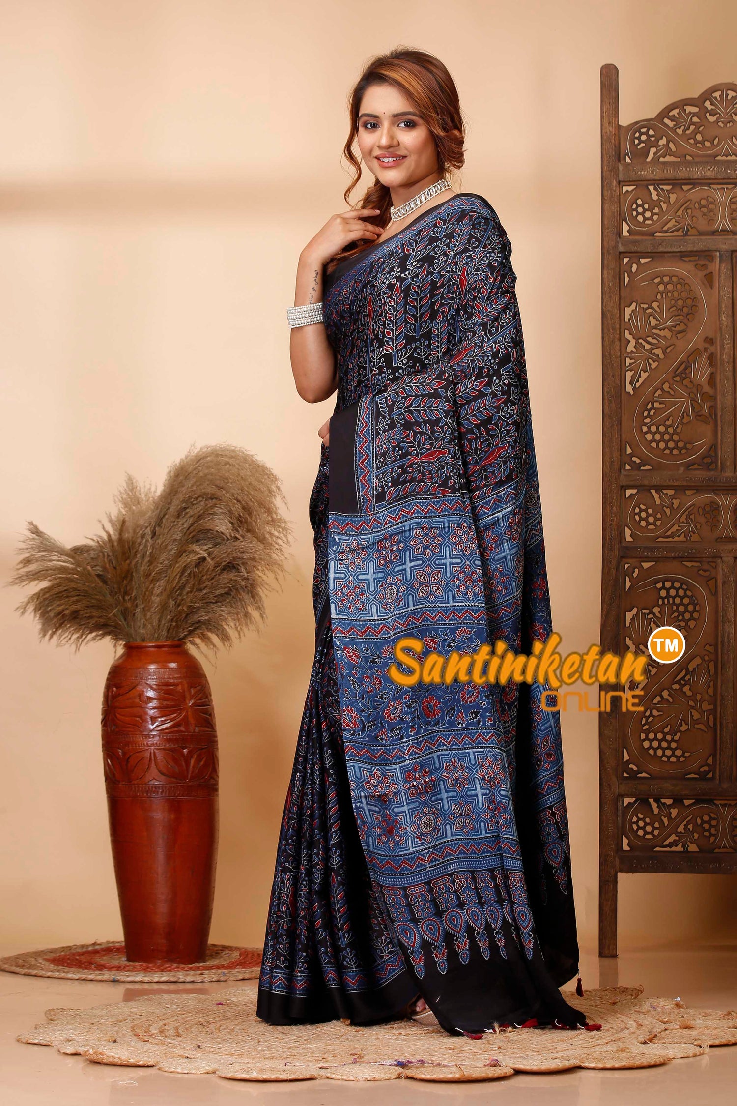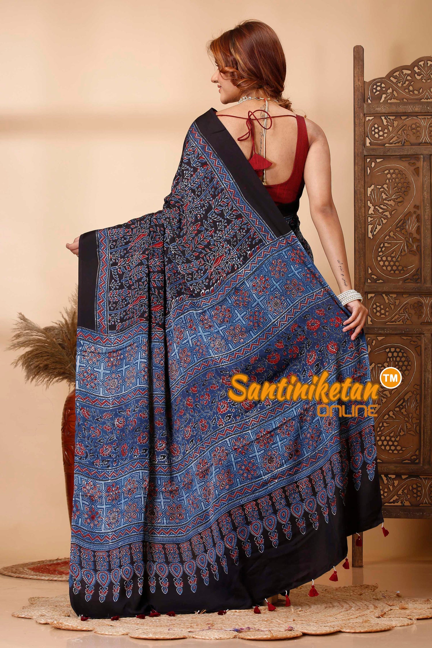 Ajrakh is printed as single sided and double sided. Traditional 'Ajrakh' involves various stages of dyeing and resist printing using natural dyes and mordants. Indigo and madder are the primary colours that are used for dyeing. The resist and some colours are printed on the cloth using carved wooden blocks. These blocks are carved with intricate symmetrical patterns so that the same block can be used for both sides of the cloth. Earlier specialist wood carvers made these wooden blocks.