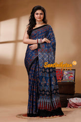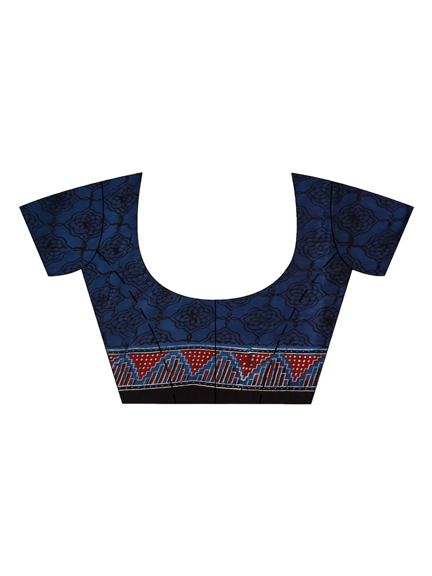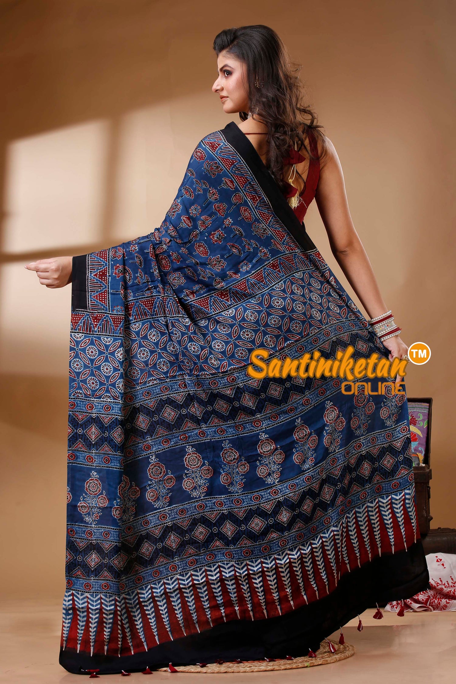 Ajrakh is printed as single sided and double sided. Traditional 'Ajrakh' involves various stages of dyeing and resist printing using natural dyes and mordants. Indigo and madder are the primary colours that are used for dyeing. The resist and some colours are printed on the cloth using carved wooden blocks. These blocks are carved with intricate symmetrical patterns so that the same block can be used for both sides of the cloth. Earlier specialist wood carvers made these wooden blocks.