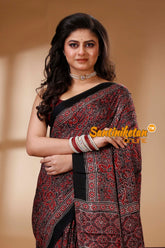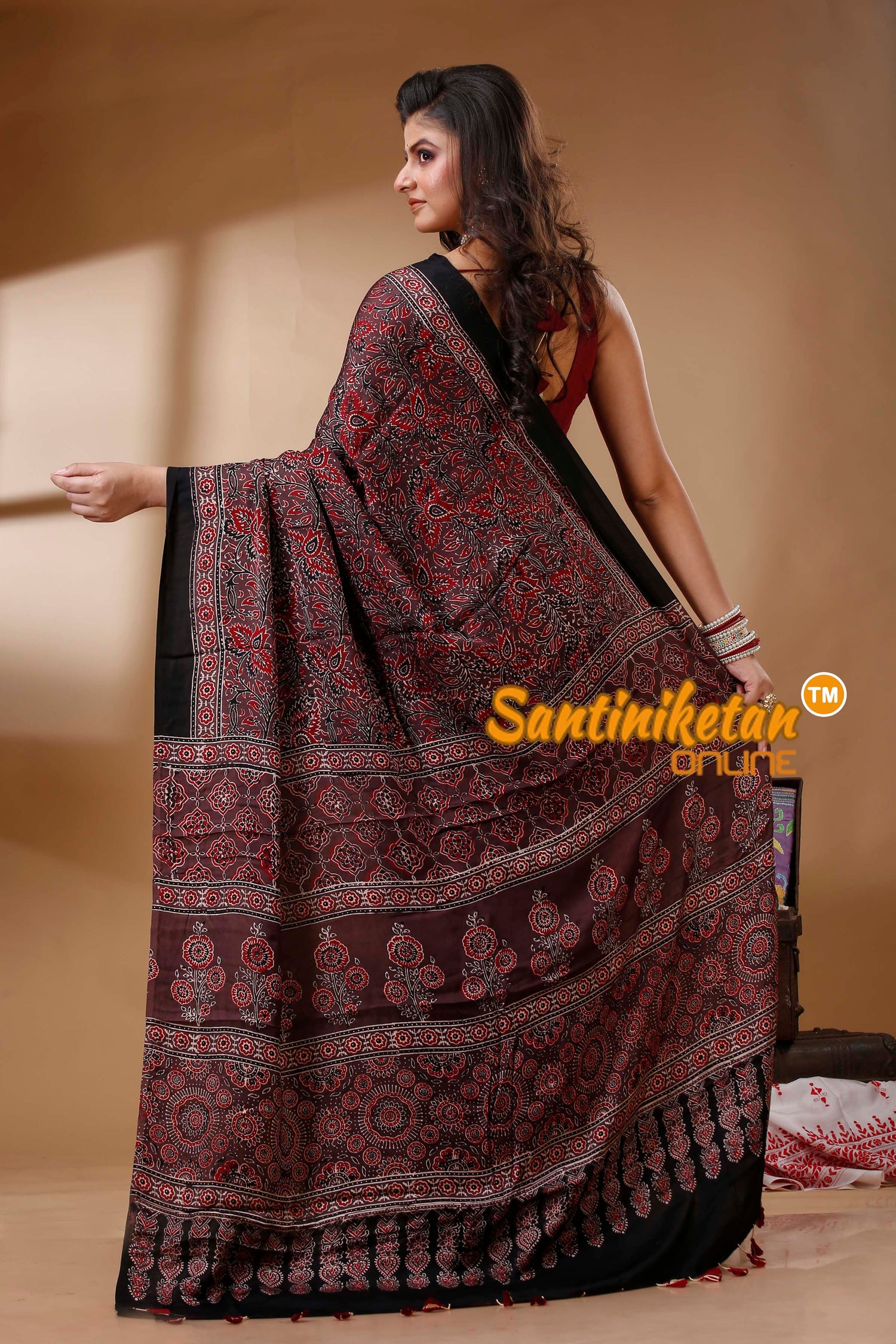 Ajrakh is printed as single sided and double sided. Traditional 'Ajrakh' involves various stages of dyeing and resist printing using natural dyes and mordants. Indigo and madder are the primary colours that are used for dyeing. The resist and some colours are printed on the cloth using carved wooden blocks. These blocks are carved with intricate symmetrical patterns so that the same block can be used for both sides of the cloth. Earlier specialist wood carvers made these wooden blocks.