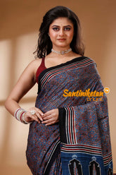 Ajrakh is printed as single sided and double sided. Traditional 'Ajrakh' involves various stages of dyeing and resist printing using natural dyes and mordants. Indigo and madder are the primary colours that are used for dyeing. The resist and some colours are printed on the cloth using carved wooden blocks. These blocks are carved with intricate symmetrical patterns so that the same block can be used for both sides of the cloth. Earlier specialist wood carvers made these wooden blocks.