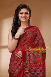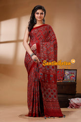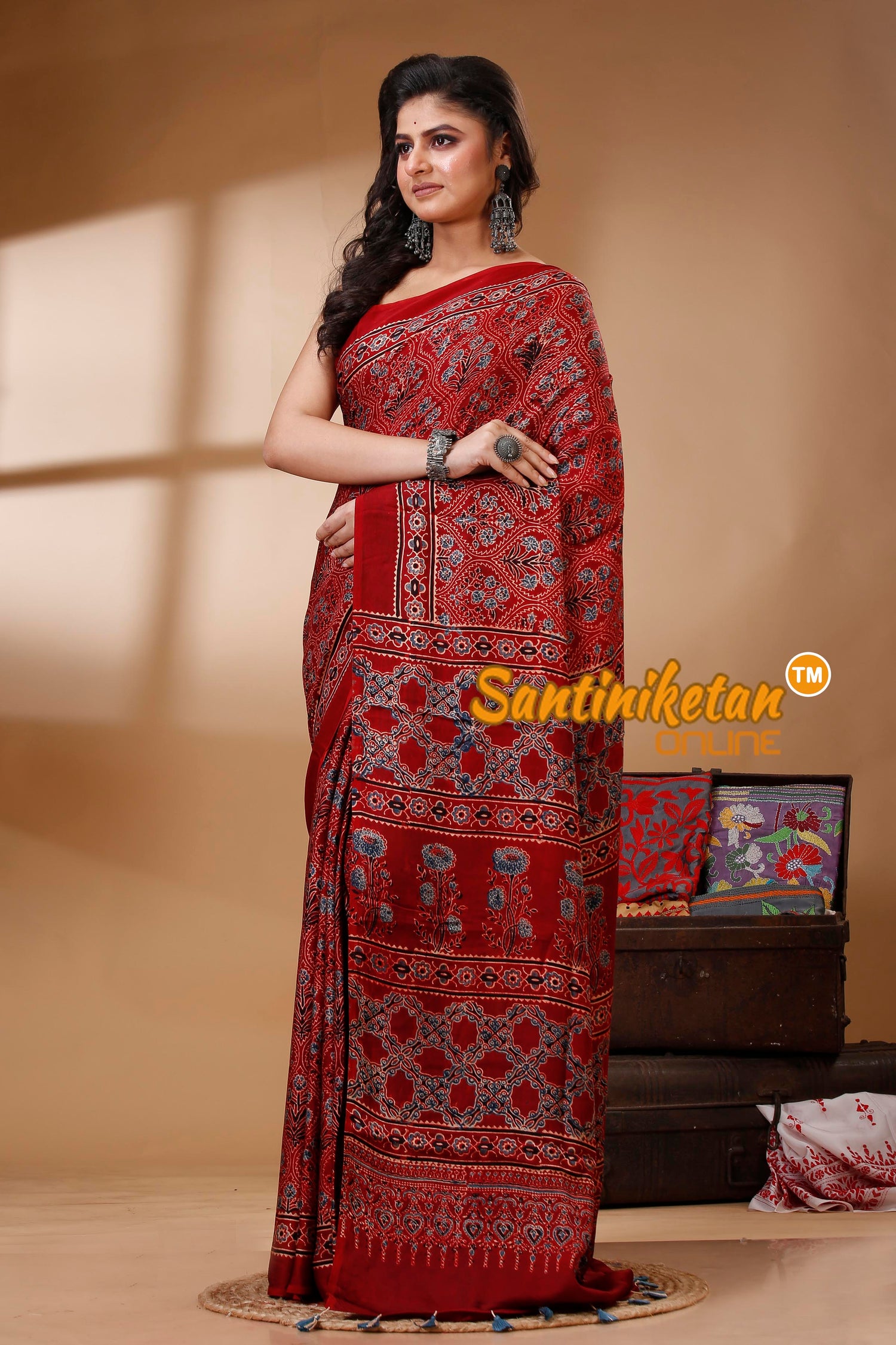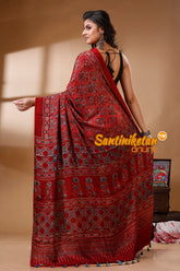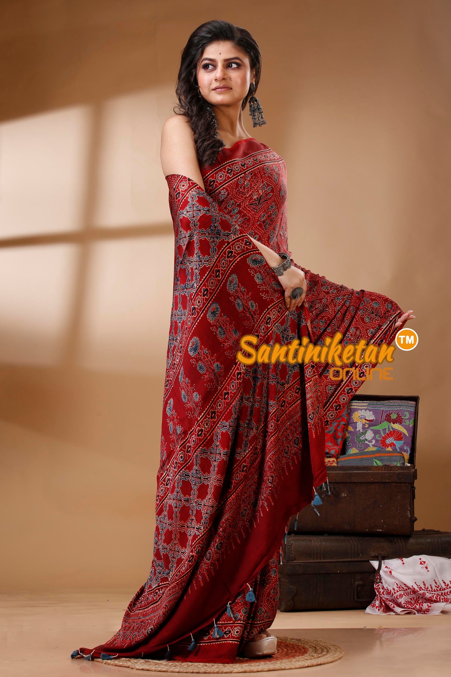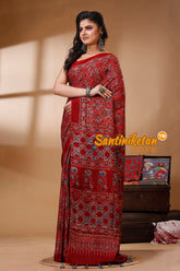 Ajrakh is printed as single sided and double sided. Traditional 'Ajrakh' involves various stages of dyeing and resist printing using natural dyes and mordants. Indigo and madder are the primary colours that are used for dyeing. The resist and some colours are printed on the cloth using carved wooden blocks. These blocks are carved with intricate symmetrical patterns so that the same block can be used for both sides of the cloth. Earlier specialist wood carvers made these wooden blocks.