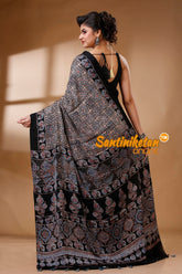 Ajrakh is printed as single sided and double sided. Traditional 'Ajrakh' involves various stages of dyeing and resist printing using natural dyes and mordants. Indigo and madder are the primary colours that are used for dyeing. The resist and some colours are printed on the cloth using carved wooden blocks. These blocks are carved with intricate symmetrical patterns so that the same block can be used for both sides of the cloth. Earlier specialist wood carvers made these wooden blocks.