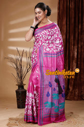 Dye Pure Tussar Silk Kantha Stitch Saree