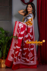 Kantha Stitch Saree On Gachi Tussar Silk With Running Blouse.