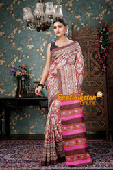 Exclusive Hand Block On Murshidabad Silk. Soft & Comfort To Wear.