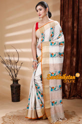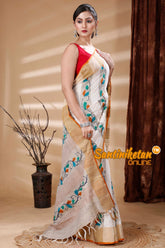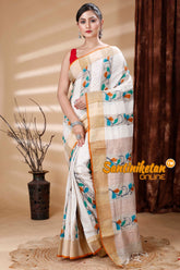 Hand Painted Zori Border Pure Ketiya Tussar Silk Saree, available exclusively through Sanatiniketan Online. Creativity of experienced artisans has gone into producing this unique piece. Purely Hand Painting Saree Crafted by experience artisan. Accent your look with classic elegance. This exclusive design features exquisite natural patterns created by hand-painting from experienced artisans. Each piece is unique with its own distinct or State story.