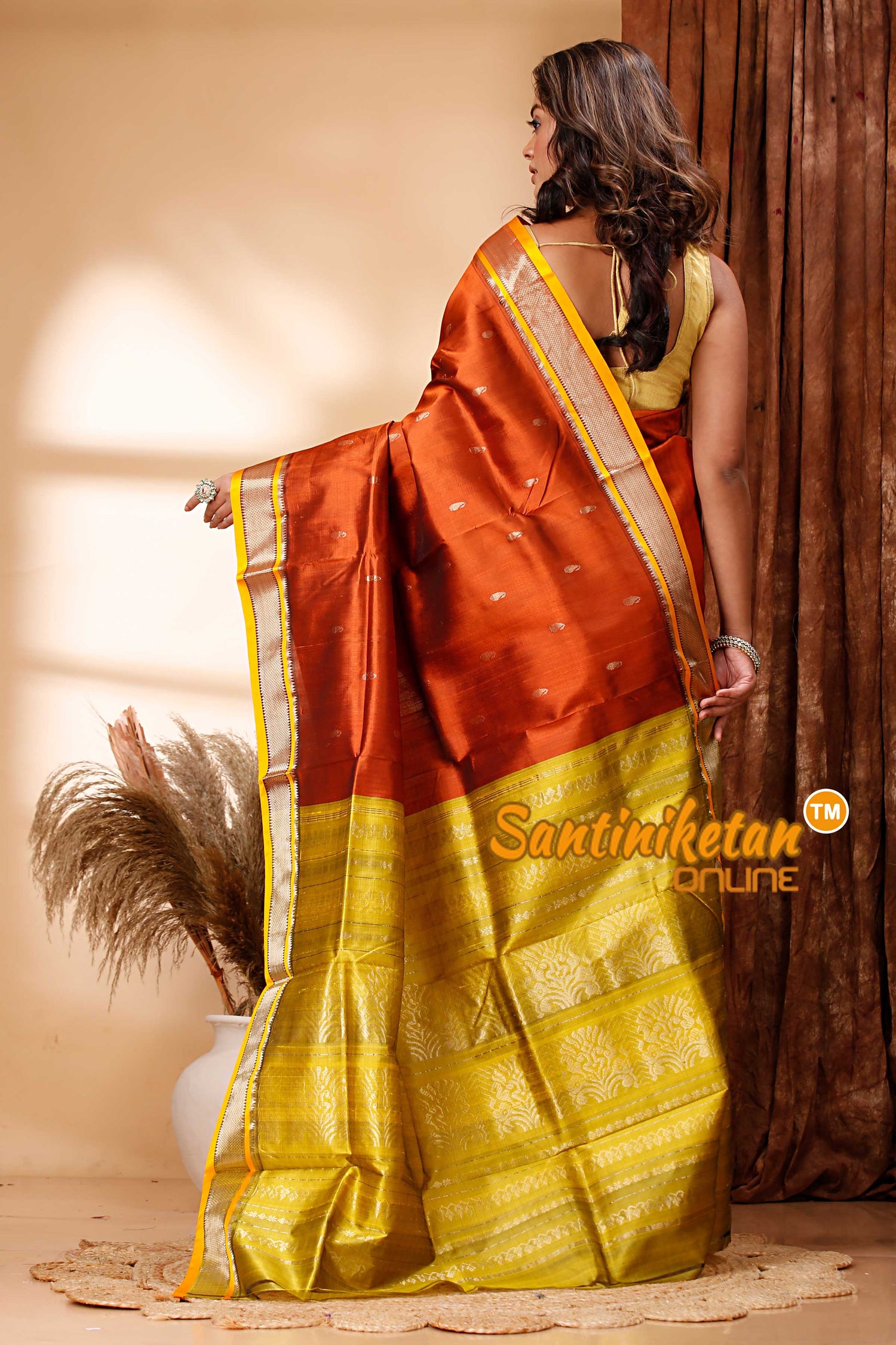 Kanjivaram Design Garad Silk Saree is crafted with resham and zari buti all over the body. the pallu have resham and zari work. Designer border all along.