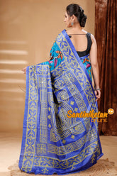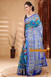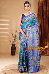 Pure Dye Tussar Silk Painting Gujarati Stitch Saree This timeless classic is crafted with the utmost care, featuring premium-grade Tussar Silk for a luxe feel and luxurious look.
