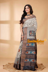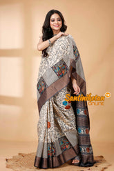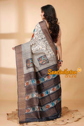 Pure Zari Tussar Hand Block Painted Saree SNN202415771