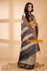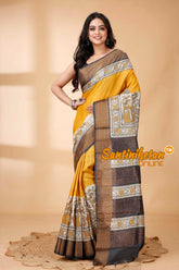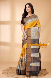 Pure Zari Tussar Hand Block Painted Saree SNN202415862