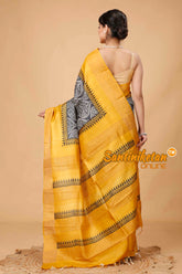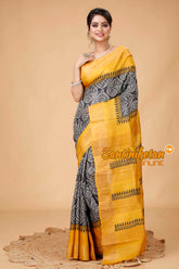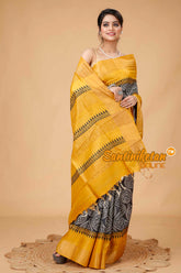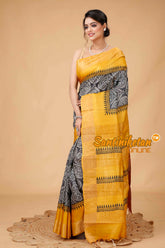 Zari Tussar Silk Hand Block Painted Saree