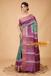 Pure Zari Tussar Hand Block Painted Saree SNN202416077