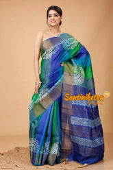 Pure Zari Tussar Hand Block Painted Saree SN202416118