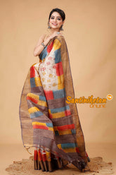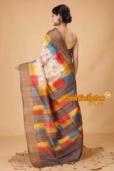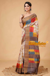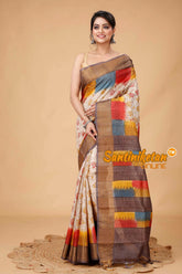 Zari Tussar Silk Hand Block Painted Saree