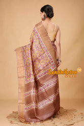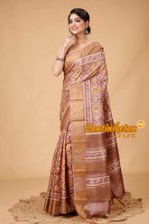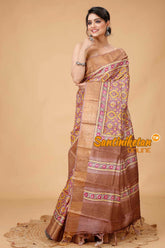 Pure Zari Tussar Hand Block Painted Saree SNN202416163