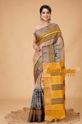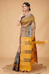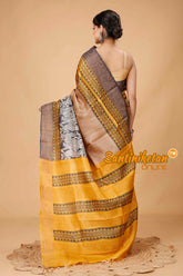 Zari Tussar Silk Hand Block Painted Saree