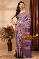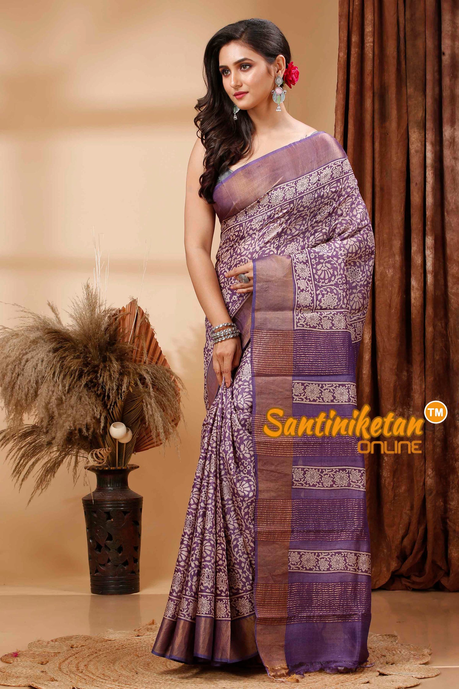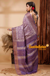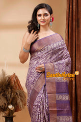 Pure Zari Tussar Hand Block Painted Saree SN202417254