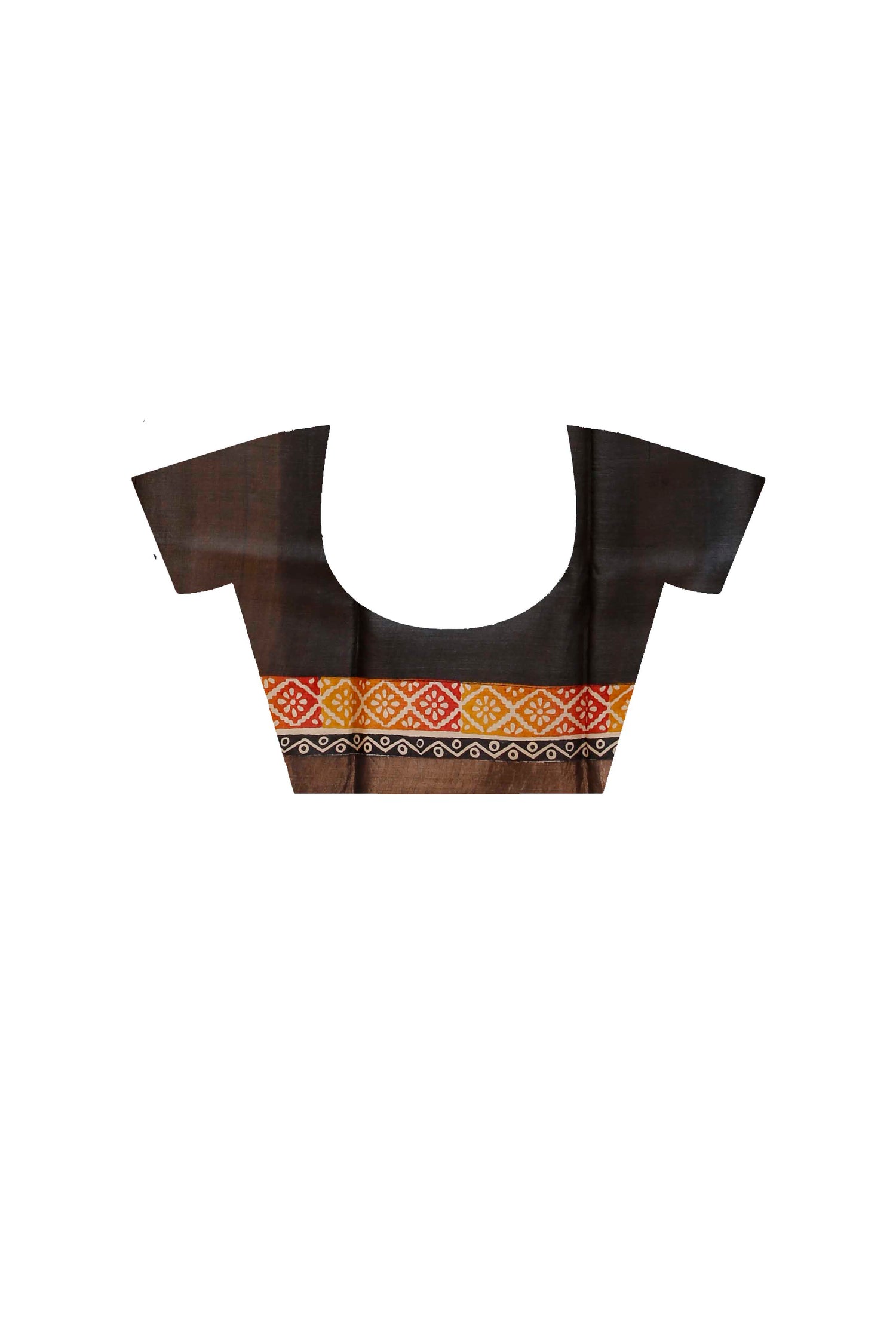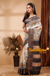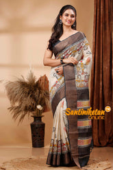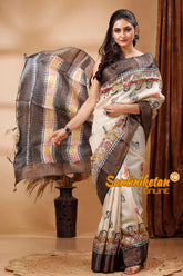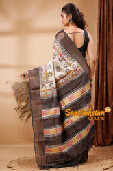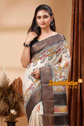 Pure Zari Tussar Hand Block Painted Saree SN202417554