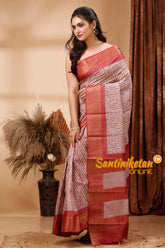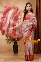 Zari Tussar Silk Hand Block Painted Saree