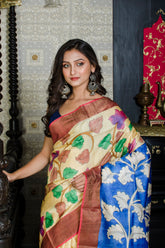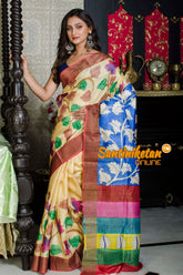 Zari Tussar Silk Saree Exclusive Hand Painted Design With Running Blouse. Brand new & 100% Genuine Silk Mark Product.
