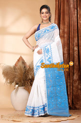 Resham Silk Jamdani Saree. All Designs and Works seen in the image are thread-works, not Printed. You can wear this saree in all occasions specially Puja, Party, any occasion in your family or friends