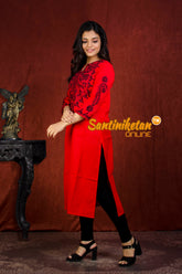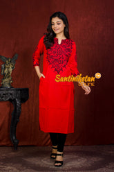 Straight Cut Cotton Kurti With Exclusive Kantha Work (Hand Embroidery)