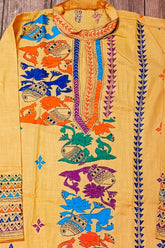 Yellow Pure Cotton with Kantha Work (Hand Embroidery) Panjabi