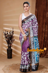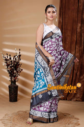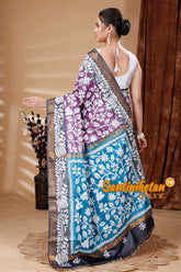 Zari Border Pure Tussar Silk Kantha Stitch Saree