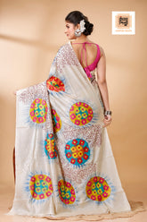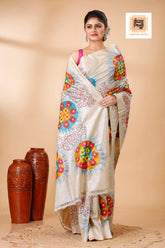 Gachi Tussar Multicolor Thread Work Abstract Line and Sunrising Flower Motif Kantha Stitch Saree
