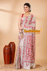 Pure Katan and Ketiya Tussar Stripe Kantha Stitch Saree SN202522148