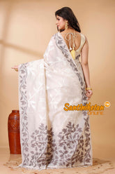 Experience the timeless elegance of the Muga Cotton Jamdani Saree, crafted with exquisite handwoven Jamdani patterns on luxurious Muga cotton fabric. This saree combines the natural sheen and durability of Muga silk with the intricate artistry of Jamdani weaving, offering a sophisticated drape and breathable comfort. Ideal for formal occasions and cultural celebrations, it reflects expert craftsmanship and heritage, making it a valuable addition to your traditional wardrobe.