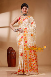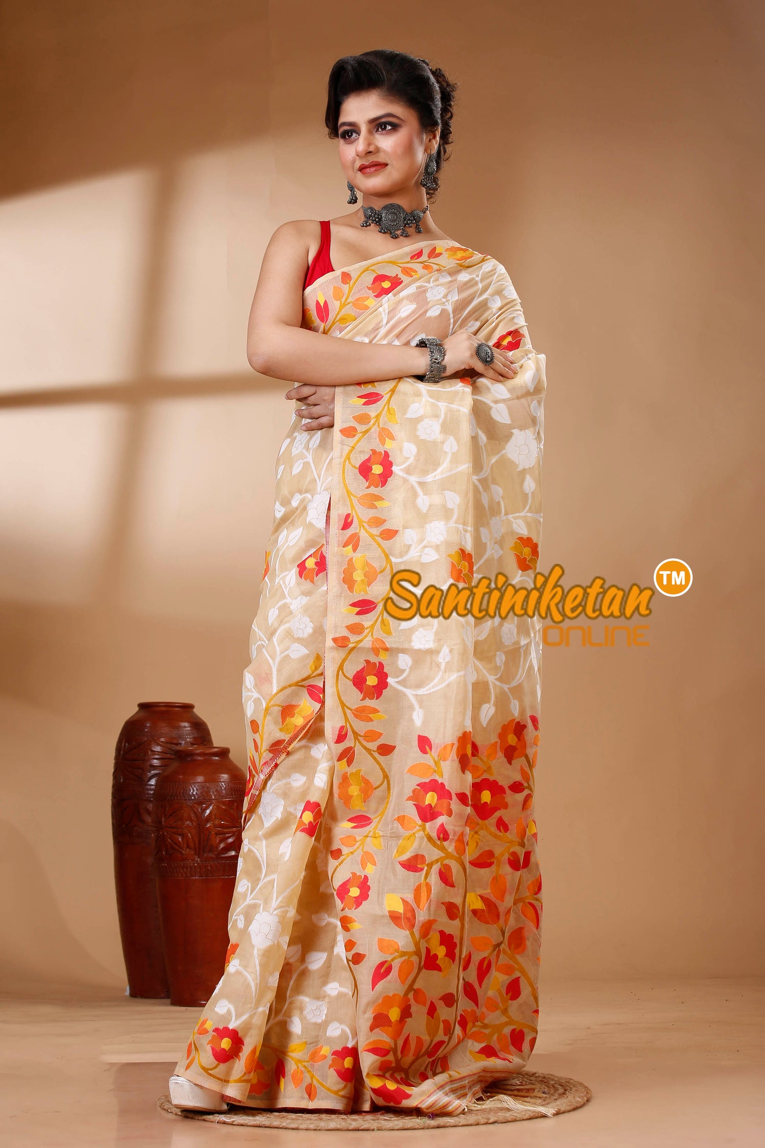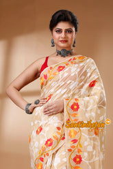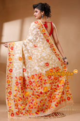 Experience the timeless elegance of the Muga Cotton Jamdani Saree, crafted with exquisite handwoven Jamdani patterns on luxurious Muga cotton fabric. This saree combines the natural sheen and durability of Muga silk with the intricate artistry of Jamdani weaving, offering a sophisticated drape and breathable comfort. Ideal for formal occasions and cultural celebrations, it reflects expert craftsmanship and heritage, making it a valuable addition to your traditional wardrobe.