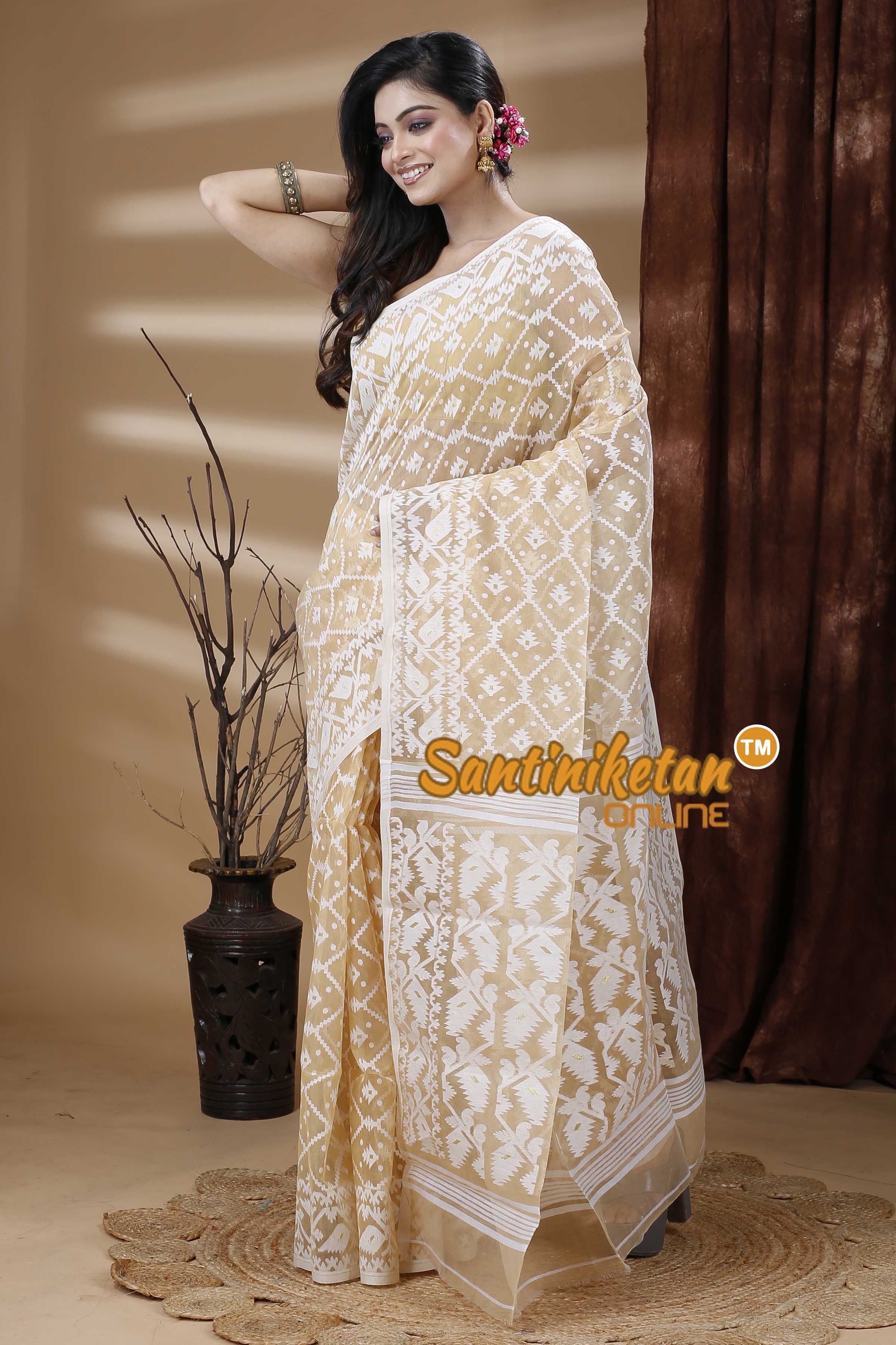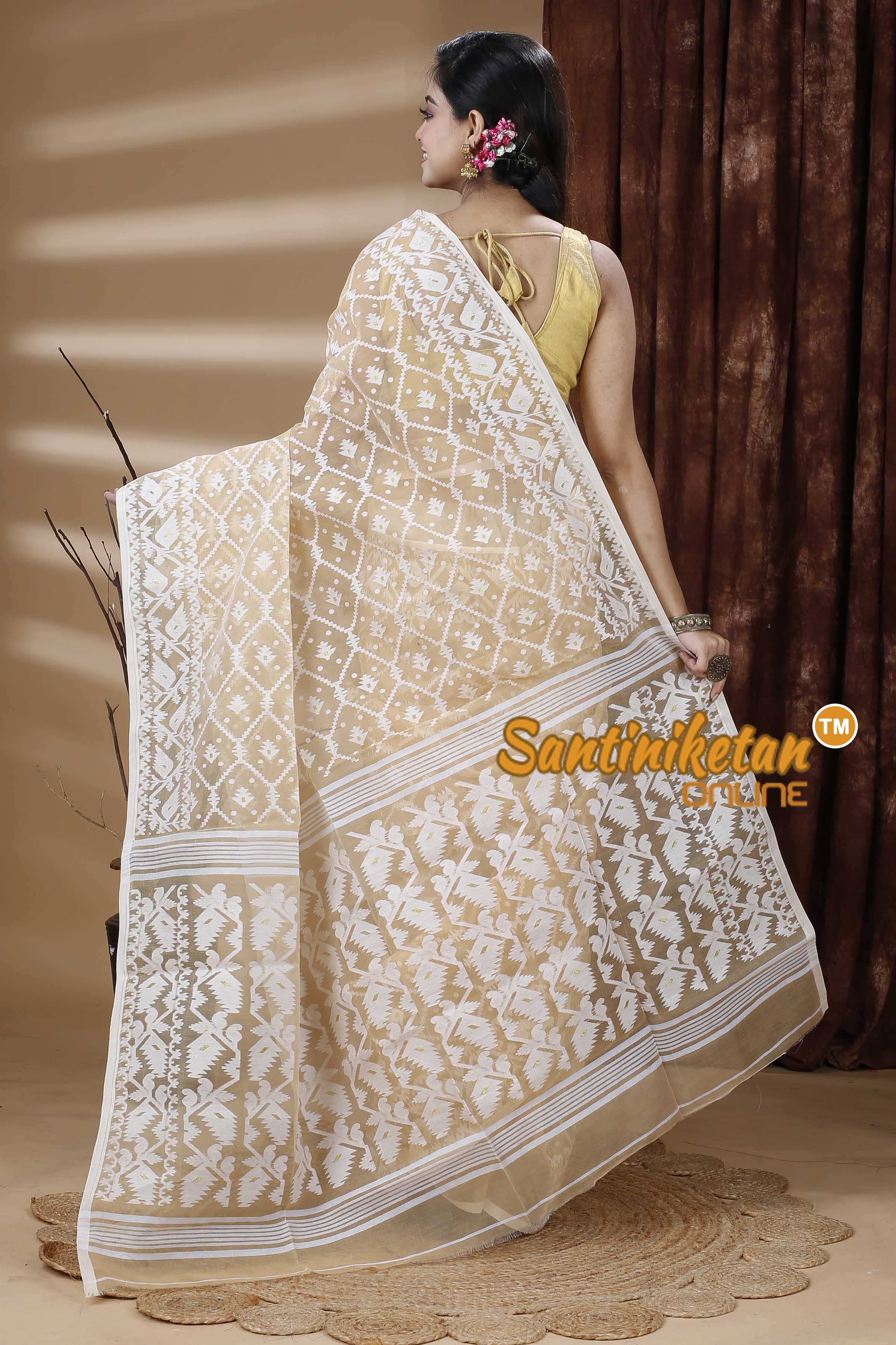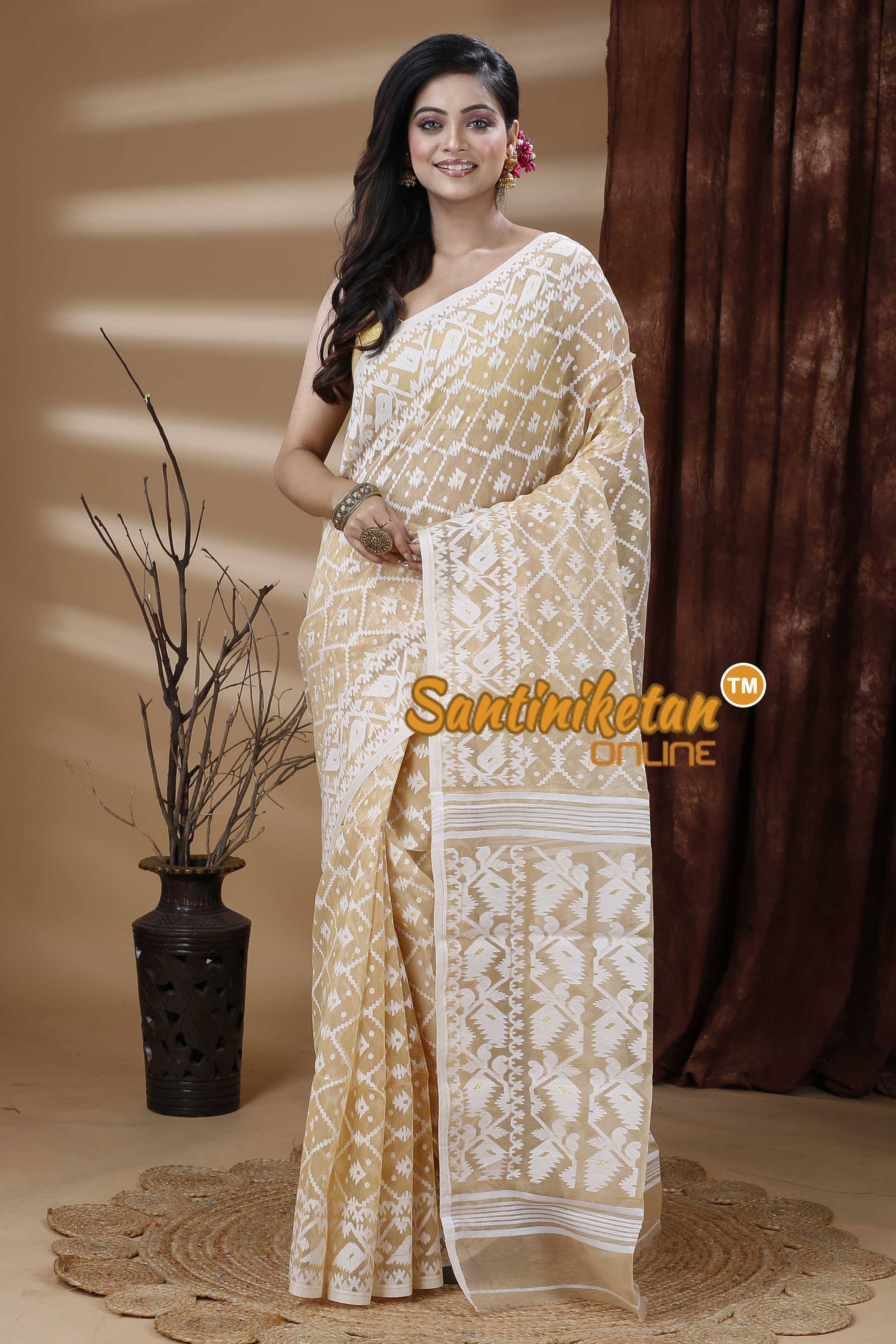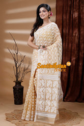 Resham Silk Jamdani Saree. All Designs and Works seen in the image are thread-works, not Printed. You can wear this saree in all occasions specially Puja, Party, any occasion in your family or friends