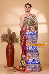 Bishnupuri (Katan) Silk Kantha Stitch Saree SN202521781