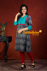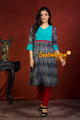 Pure Cotton Ikkat Kurta With Cotton Silk