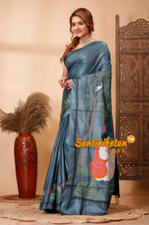 Pure Dye Gachi Tussar Silk Kantha Stitch Saree SN202521648
