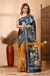 Pure Dye Ketiya Tussar Silk Kantha Stitch Saree This saree is made with 100% pure high-quality Dye Ketiya Tussar silk, known for its exceptional softness and stunning texture.