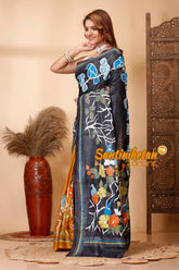 Pure Dye Ketiya Tussar Silk Kantha Stitch Saree SN202521338