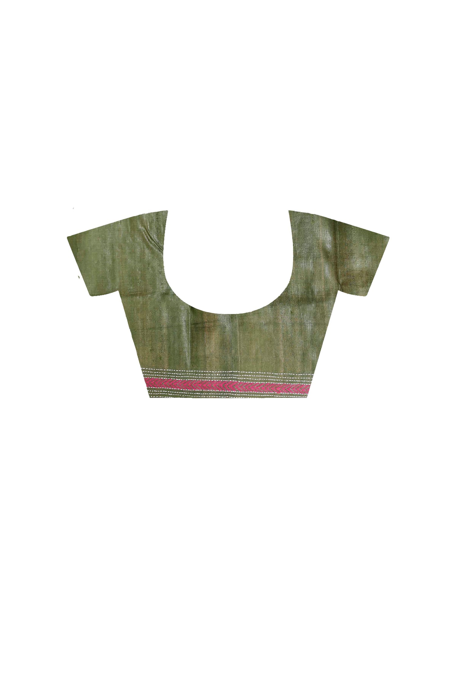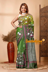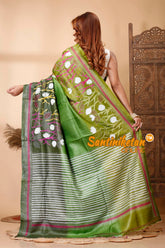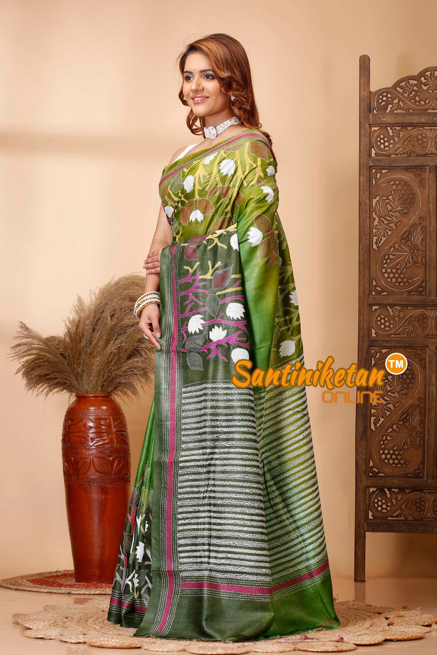 Pure Dye Tussar Silk Kantha Stitch Saree SN202521344