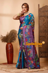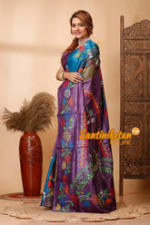 Pure Dye Tussar Silk Kantha Stitch Saree This saree is made with 100% pure high-quality Dye Tussar silk, known for its exceptional softness and stunning texture.