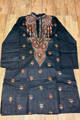Black Pure Cotton with Kantha Work (Hand Embroidery) Panjabi