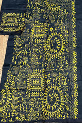 Crafted from pure black cotton, this Panjabi features intricate Kantha hand embroidery that highlights traditional craftsmanship. The breathable fabric ensures comfort in warm climates, while the detailed stitching adds a unique, artisanal touch. Ideal for those seeking a blend of classic style and cultural heritage in their wardrobe.