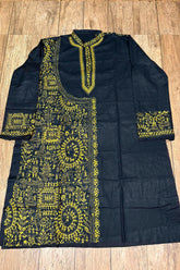 Black Pure Cotton with Kantha Work (Hand Embroidery) Panjabi