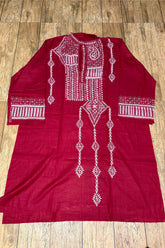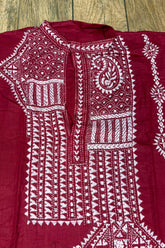 Maroon Pure Cotton with Kantha Work (Hand Embroidery) Panjabi