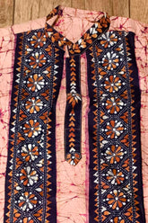 Pink Pure Cotton Batik with Kantha Work (Hand Embroidery) Panjabi