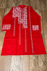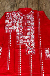 Red Pure Cotton with Kantha Work (Hand Embroidery) Panjabi