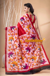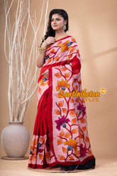 Exclusive Hand Made Design On 3 Ply Murshidabad Silk. Soft & Comfort To Wear. Silk Quality Assured With Silk Mark.