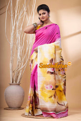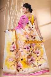 Exclusive Hand Made Design On 3 Ply Murshidabad Silk. Soft & Comfort To Wear. Silk Quality Assured With Silk Mark.