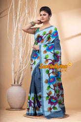 Exclusive Hand Made Design On 3 Ply Murshidabad Silk. Soft & Comfort To Wear. Silk Quality Assured With Silk Mark.