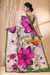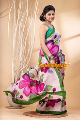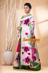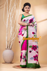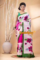 Exclusive Hand Made Design On 3 Ply Murshidabad Silk. Soft & Comfort To Wear. Silk Quality Assured With Silk Mark.
